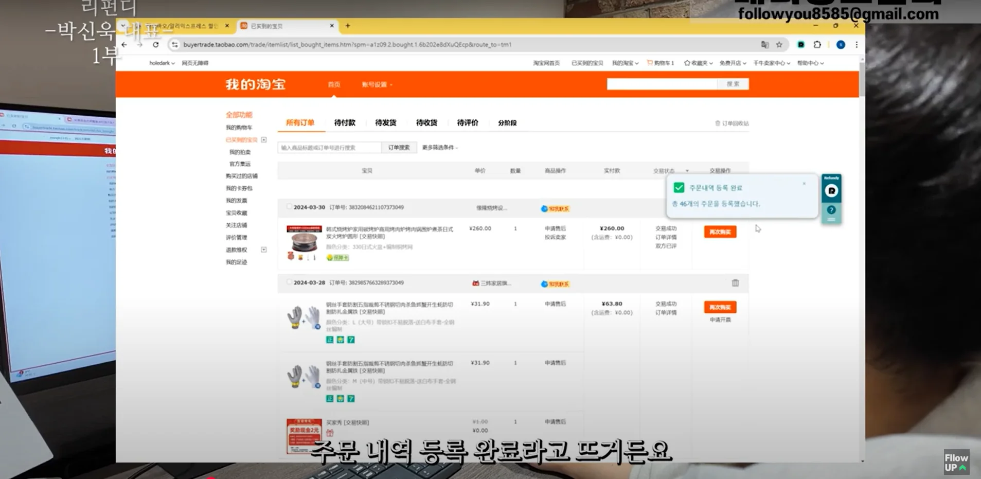 ✅ 크롬 확장 프로그램 제공 → 타오바오 주문 내역 페이지에서 클릭 한 번으로 주문 등록 & 가격 변동 추적