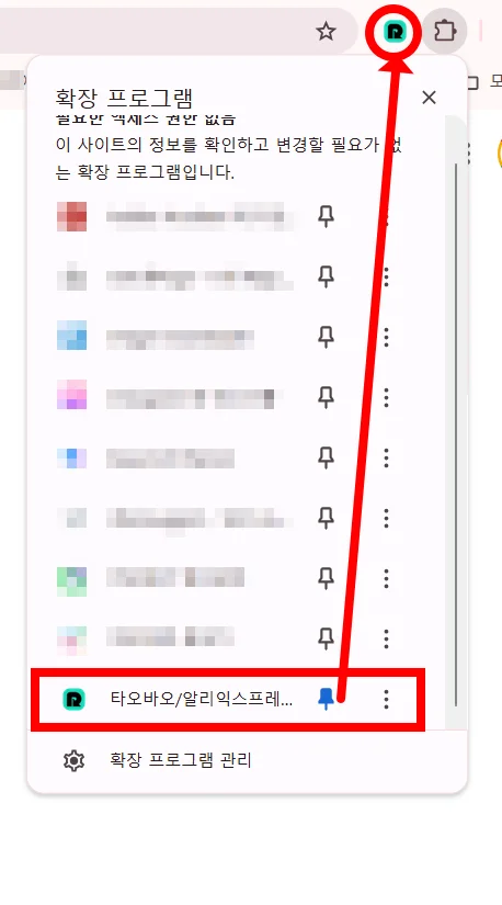 설치가 완료되었는지 확인하려면 크롬 주소 표시줄 우측의 퍼즐 모양 아이콘을 클릭해보세요. 설치된 확장 프로그램 목록에서 리펀디를 찾을 수 있습니다.