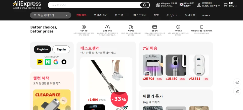 우선 크롬 브라우저에서 알리익스프레스에 접속합니다.
