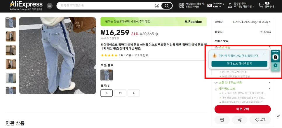 2. 알리익스프레스에서 캐시백 적용하기
